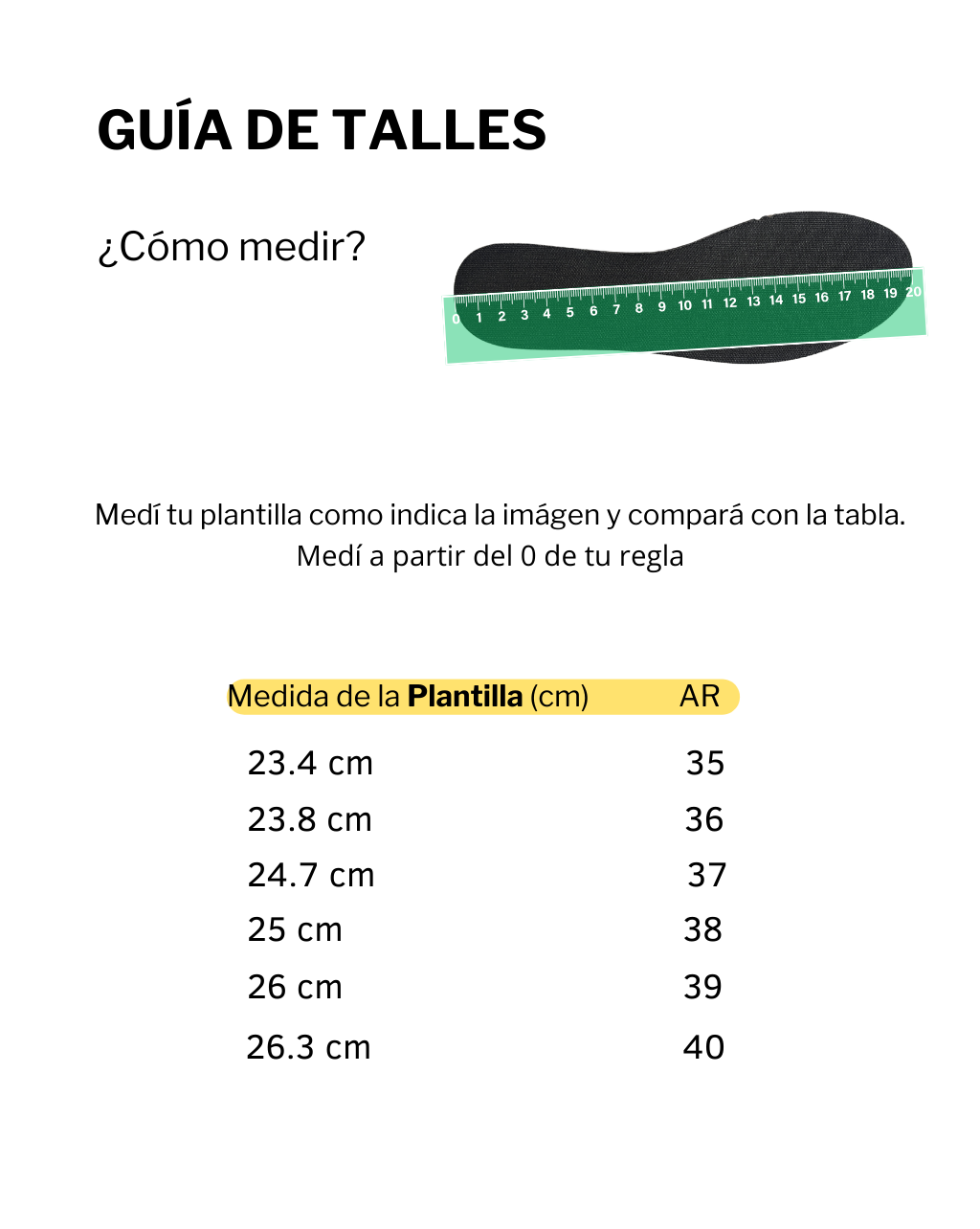 Todas las medidas son tomadas a partir del talle 35.