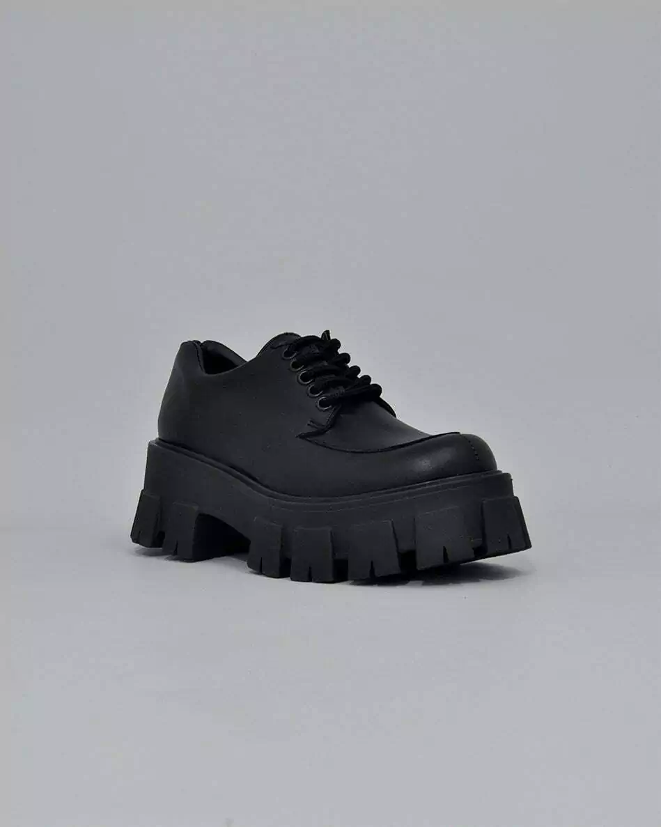 Zapato acordonado con base de material TR importado. El diseño cuenta con cinco ojales metálicos color negro a cada lado.